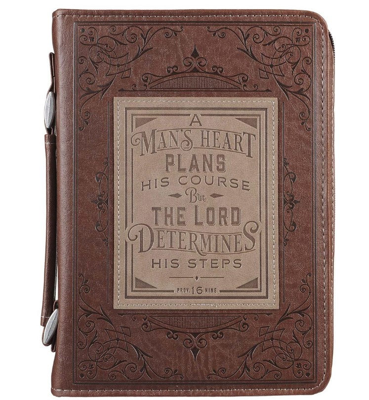 A Man's Heart Brown Faux Leather Classic Bible Cover - Proverbs 16:9