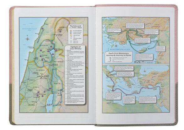 With an easy-to-read super giant 17-point type text in a double-column format, footnote cross-reference guide, concordance, and thematic Scripture verse finder, you'll find this Bible an excellent tool for study. Additional study features include the words of Christ in red ink, eight full-color annotated biblical maps, and a one-year Bible reading plan.