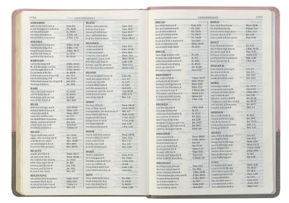 The delicate page edges are protected by gold gilt-edging, and a thumb index and silver satin ribbon marker will help you navigate your Bible and save your spot. A lay-flat Smyth sewn spine protects the Bible binding when opened, and topstitching along the edges of the covers protects from wear and tear.