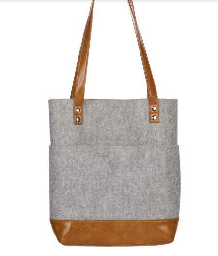 The Silver Heart Heather Gray Felt and Toffee Brown Faux Leather Fashion Bible Tote Bag is priced as a steal and makes a fabulous birthday gift for a mom, an appreciation gift for a teacher, or a graduation gift for a student.