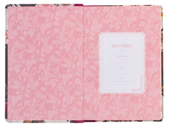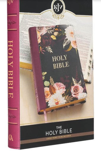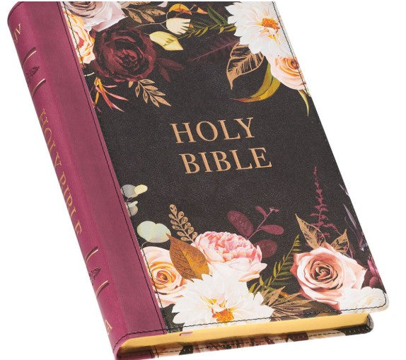The Black and Burgundy Floral Faux Leather Large Print Thinline King James Version Bible with Thumb Index is an exquisite gift that will please any woman. Its gorgeous cover design and many practical features make the Black and Burgundy Floral Faux Leather Large Print Thinline King James Version Bible with Thumb Index the ideal gift for celebrating a beloved grandmother or mother on her birthday.